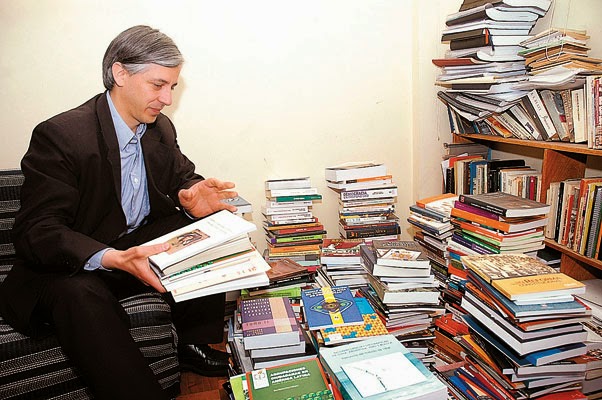 Ella asevera que también es obsesivamente ordenado. “Siempre anda acomodando las cosas que están fuera de lugar. Aunque lo que más le gusta es regar las plantas, él está a cargo de cuidarlas, nadie más las puede regar”. No obstante, Álvaro admite que si hay algo que crea desorden en su hogar, son sus miles de libros, de los cuales ya perdió la cuenta y que sobrepasan los 20.000. No hay cuarto, a excepción del baño y la cocina, que no los tenga, indica, medio en serio medio en broma.